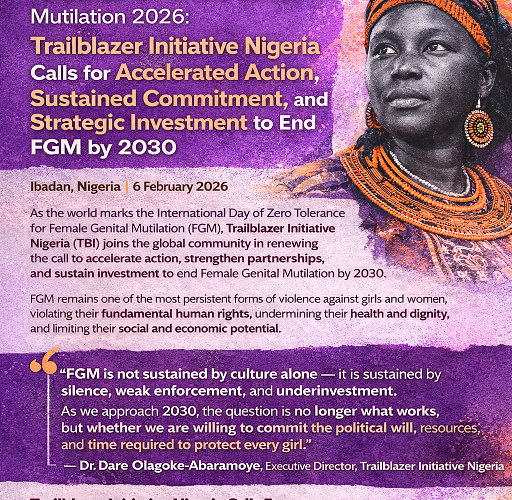 PRESS RELEASE For Immediate Release International Day of Zero Tolerance for Female Genital Mutilation 2026: Trailblazer Initiative Nigeria Calls for Accelerated Action, Sustained Commitment, and Strategic Investment to End FGM by 2030 Ibadan, Nigeria |...
