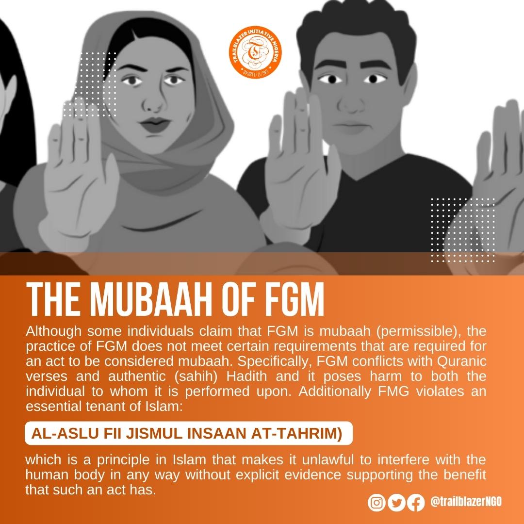 •  The Holy Quran is void of any reference to FGM, there is no Ijma’ or consensus on a specific legal ruling, and there is no Qiyas or analogy that can be accepted.