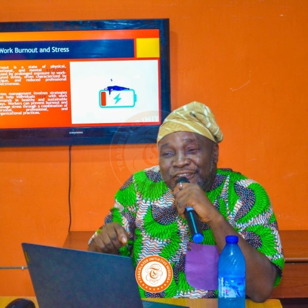 Dr. Adetiloye led an interactive and deeply engaging session on building a positive mindset and reinforcement, challenging participants to adopt growth-oriented thinking, emotional intelligence, and ethical leadership in their daily work. His facilitation combined practical insights with reflective exercises that resonated strongly with staff.